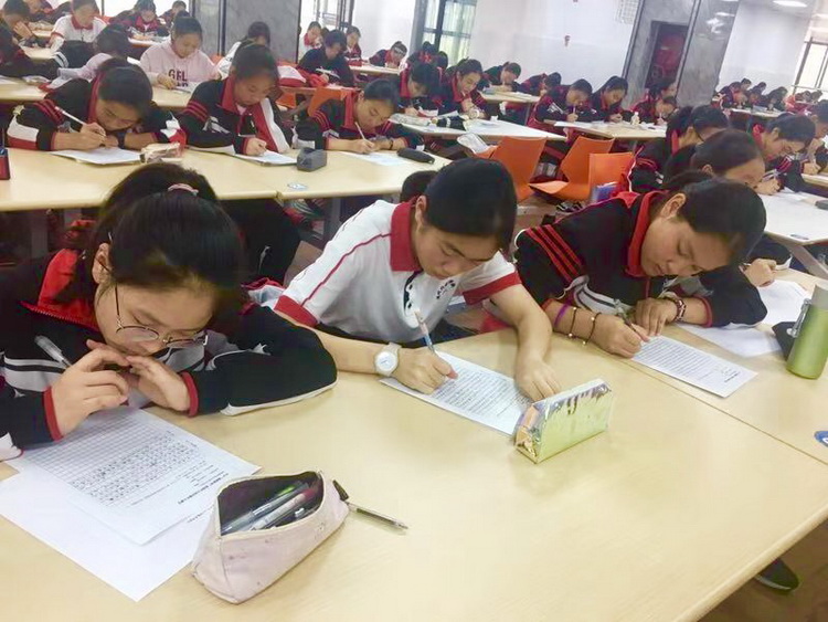 从温州二十三中接题,此次温州外国语站的作文题目援引“你看我时很远,你看云时很近”“问君何能尔,心远地自偏”“海内存知己,天涯若比邻”三句诗,传递对于远与近的思辨精神。参赛学生聚精会神,书写思索与感悟。