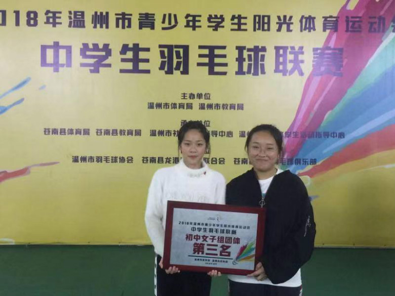 荣获2018年温州市阳光体育羽毛球比赛
