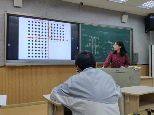 然后是金健老师对第二节《4.2平面直角坐标系(1)》的点评。他指出在电脑发展的便利下我们不应忘记最初画直角坐标系,画格点的艰难,陈婷婷老师在课上向学生展示画坐标系的过程对学生的思维培养有着重要意义。