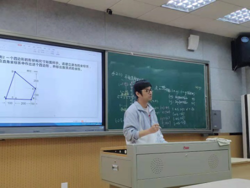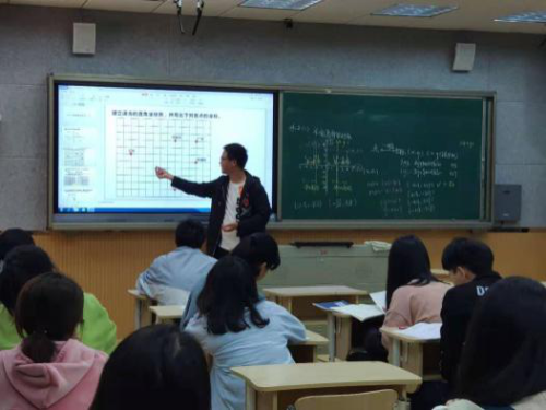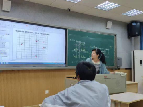 先是李恩瑞老师在八(15)班为我们带来的《4.2平面直角坐标系(2)》,本节课从复习上一节课平面直角坐标系的概念、构成、读点的坐标入手,再抛给学生一个问题:假如不给坐标系又该怎么确定点的坐标,从而引出这节课让学生自己建系读点的任务。通过点没有落在格点上带来很大的读点困难和格点上读点的流畅这一鲜明对比以及学生的不断尝试和李老师的引导,大家得出这样的结论:不同的建系方法可以得到不同的点的坐标,因此应该合理选择原点、单位长度、比例尺等,使问题尽量简单,最后通过作业本和课本的习题来巩固课堂。本节课知识点不多,但课堂安排紧凑,学情把握较好。