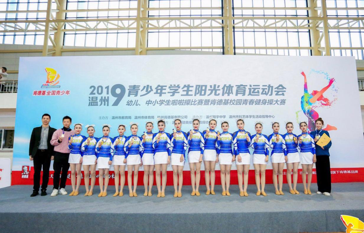 2019年11月29日-12月1日,由温州市教育局、温州市体育局主办的温州市青少年学生阳光体育运动会中小学生啦啦操比赛暨肯德基校园青春健身操大赛,在温州翔宇中学拉开了序幕,我校啦啦操队19名运动员在赵典夏老师和戴梦婷老师的带领下,在温州市十几支强队中脱颖而出取得佳绩。