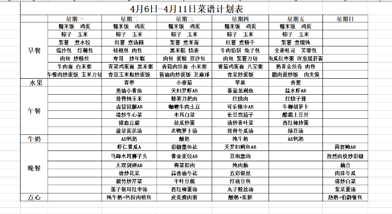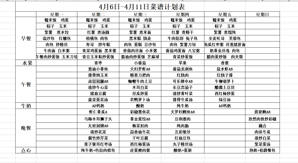 小学一周菜谱 作者: 发布时间:2021-04-05 浏览量: