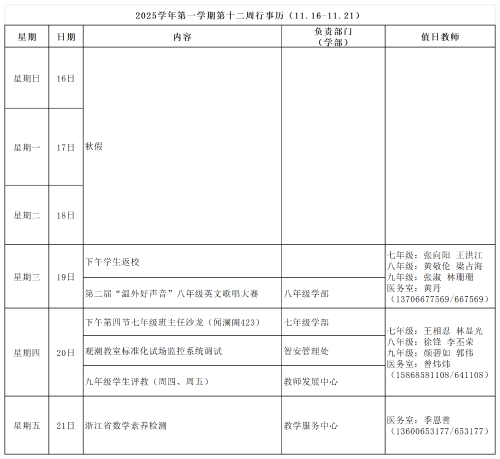 2025学年第一学期第十二周行事历(11.19-11.21) 作者: 发布时间:2025-11-20 浏览量: