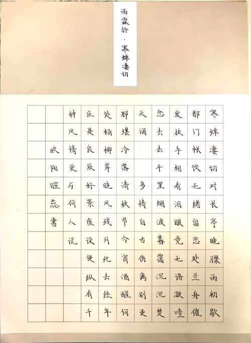 2025学年艺术节硬笔书法比赛优秀作品:2024级5班 欧阳暄蕊 作者: 发布时间:2025-12-23 浏览量: