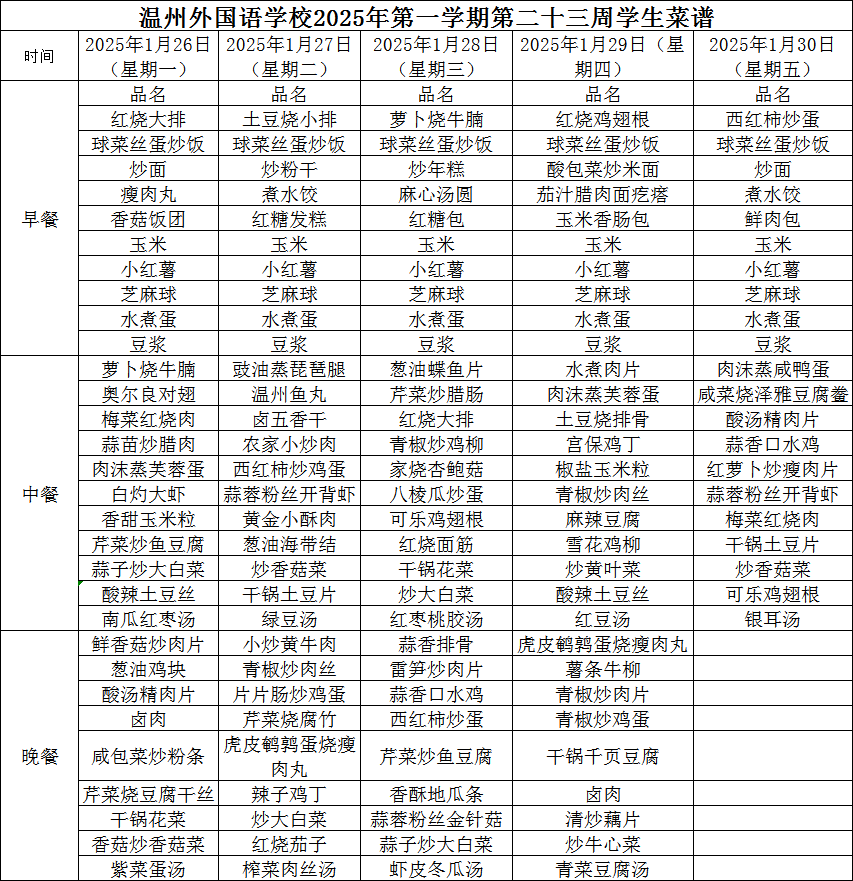 一周食谱 作者: 发布时间:2026-01-23 浏览量: