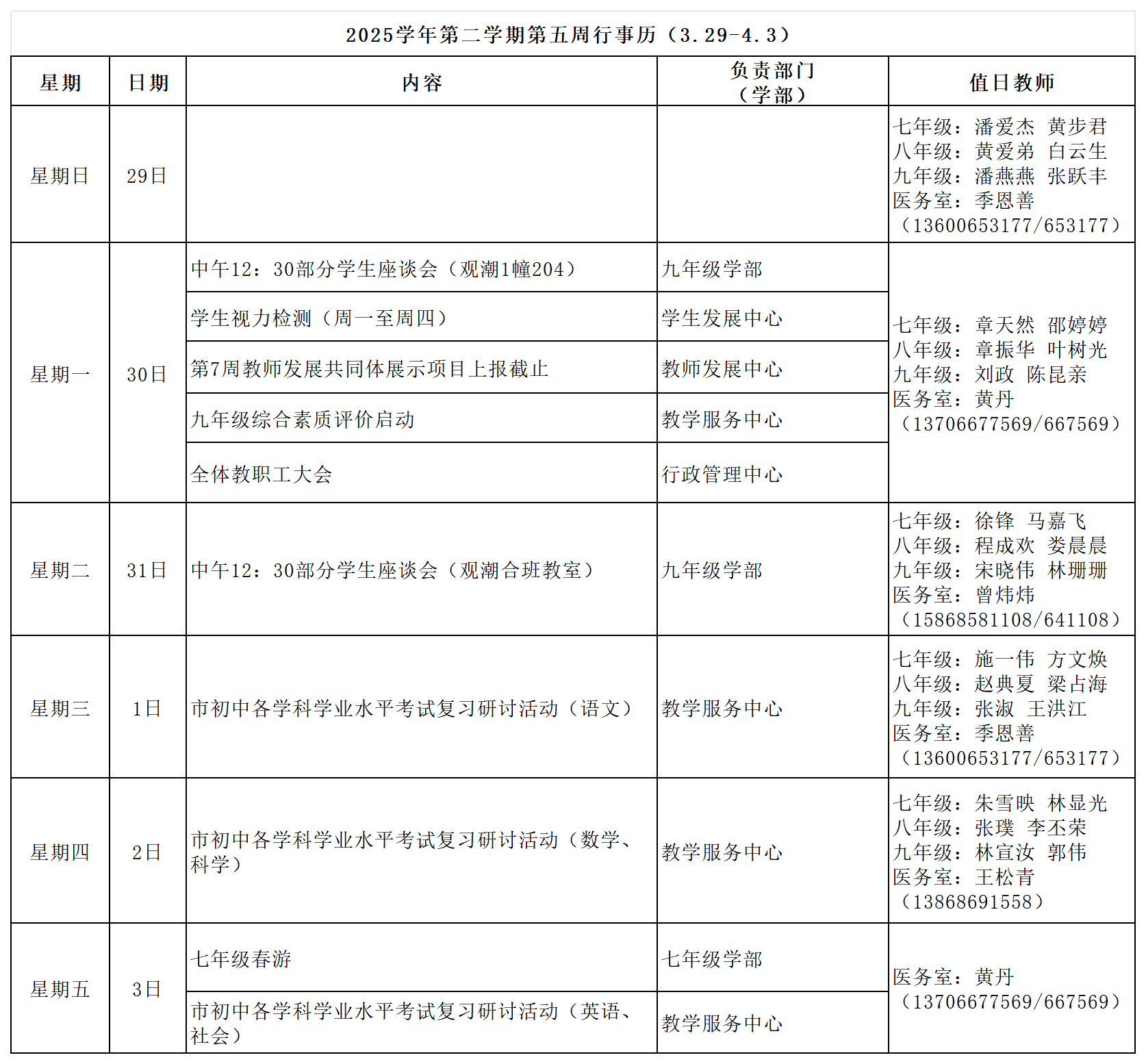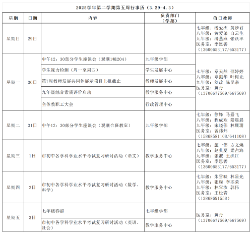 2025学年第二学期第五周行事历(3.29-4.3) 作者: 发布时间:2026-03-27 浏览量: